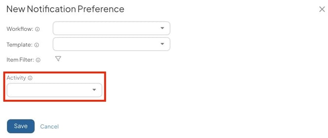 - Activity: Expand this drop-down to select the type of activity about which the user should be notified. Your options are: