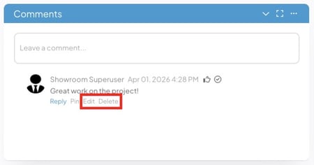 - To delete or edit a Comment, hover over it. Additional options will appear beneath the Comment.