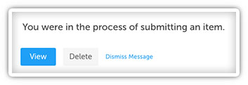 - Click View to resume working on the Item you were in the process of creating. The Create window will reopen where you left off.