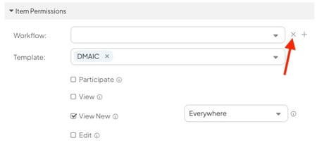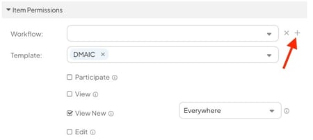 - To add an additional group of permissions, click the plus icon to the right of the Workflow drop-down.