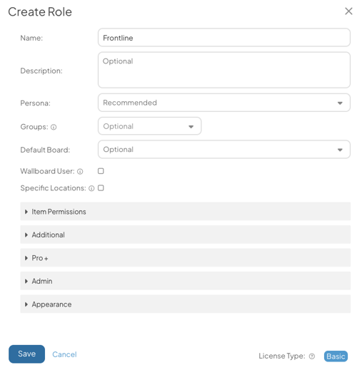 - Persona: Expand this drop-down to select with which Persona this Role is aligned, defining what type of users should be assigned this Role.