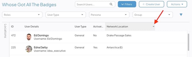 An advantage of People Lists is that you can customize which columns appear on your List. For example, you can add columns that reveal login information such as whether someone's account has been activated or display insights to a user's permissions, such as Role and Network Location.
