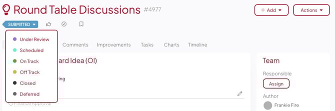 - Remove unnecessary Statuses on Templates. For example, if users should never move an Item to Planned Status, you can simplify their experience by removing the option.