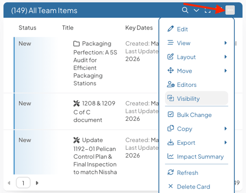 - Select Visibility from the dropdown menu.