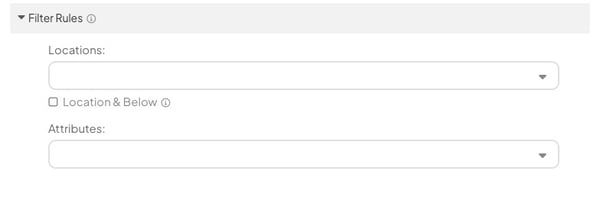 - Locations: Select one or more Locations. The Card's data will appear when one of these Locations is selected in the Board’s Location Filter or Location Quick Filter. If a non-matching Location is selected, the Card's data will disappear from the Board.