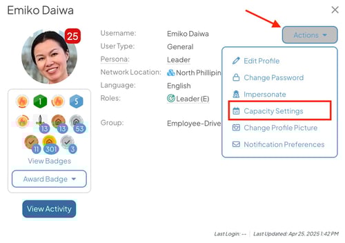 Pro Tip: If you need to update the Max Capacity for multiple users at once, use Bulk Change to save time.