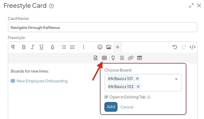 - Insert Board Link: Add a link to any Board you have permission to view.