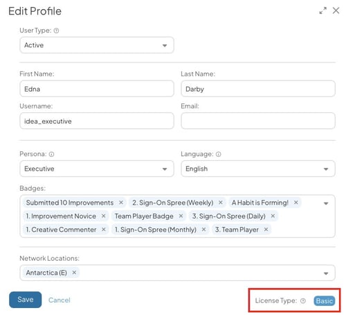 A user's License Type is based on the System Role or Roles assigned to them. Each System Role in your organization has a predefined License Type, determined by the permissions included in that Role.