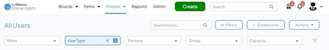 Since people most commonly filter their People lists by Roles, User Type, and Persona, these conditions are available as "Quick Filters" — filters readily accessible at the top of the People List in the People or, for people with the "User Manager" permission, the User Management sections.