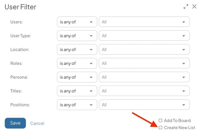 - Create a new People List using the selected filters