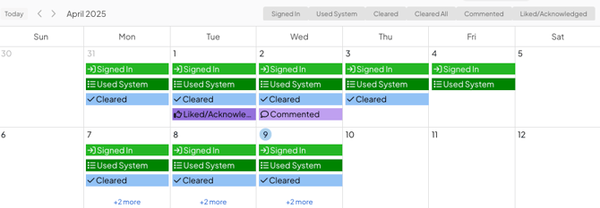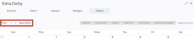 Important: The Habits Calendar began tracking the Cleared and Cleared All Habits in September 2023. All other habits utilize historical data and are included on the Habits Calendar for dates prior to September 2023.