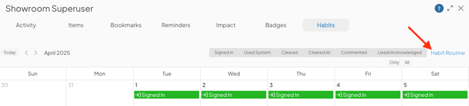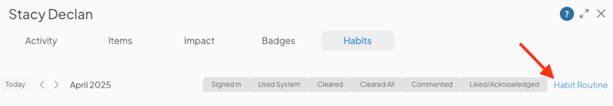 Pro Tip: You must have the Habits Administrator permission to view another user's Habits page in their Activity.