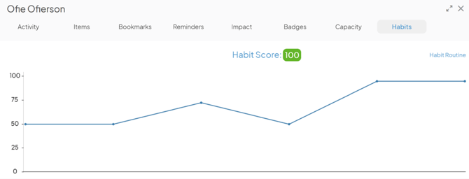 Caution: Habit Scores will only be generated for the first 100 users in your organization. After 100 people have a Habit Routine, you will no longer see the Habit Routine button in the activity of additional users. Inactive Users do not count toward the 100.