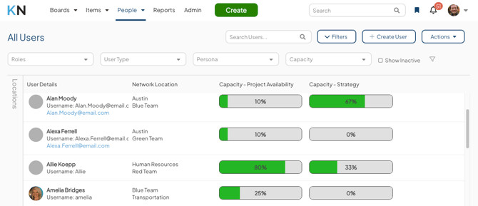 If your System Role Permissions give you access to the People section of KaiNexus or User Management, you can view the Current Capacity for all users in the system.